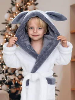 Халат детский теплый с капюшоном и ушками
