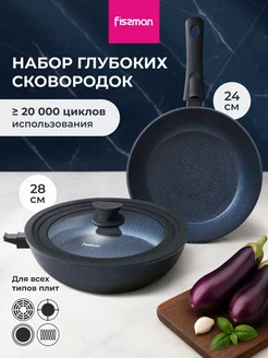 Набор сковородок SAPPHIRE PRO со съемной ручкой и крышкой