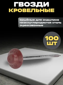 Гвозди с литой шляпкой красные 100шт для ондулина