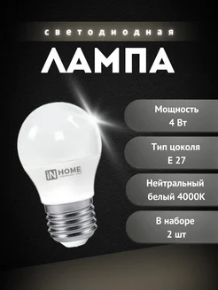 2 шт Лампа светодиоданя 4Вт 230В Е27 4000К 380Лм