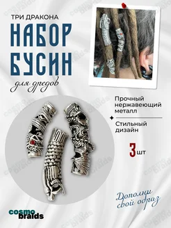 Комплект бусины "3 дракона" для дредов и афропричесок