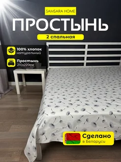 Простынь двуспальная 210х220 см - 1шт хлопок Бязь