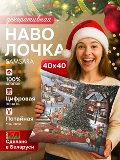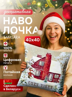 Наволочка новогодняя декоративная 40х40 на молнии для дома