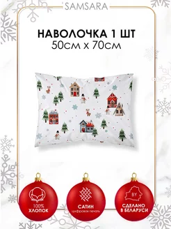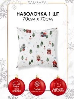 Наволочка 70х70 для дома Сатин новогодний - 1шт