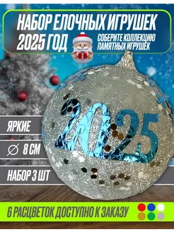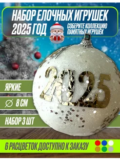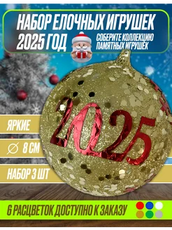 Премиум набор елочных игрушек 2025 год 3шт 8 см