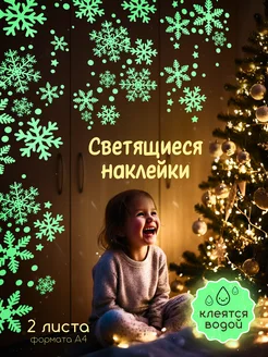 Наклейки новогодние снежинки светящиеся многоразовые 2026