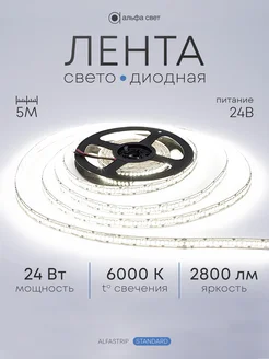 Светодиодная лента 24Вт 24В, 6000К, 5 метров