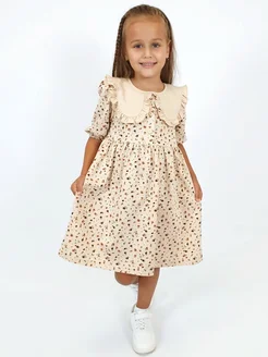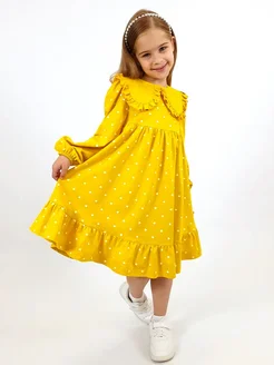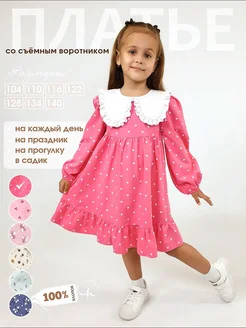 Платье детское трикотажное с воротником в садик