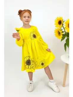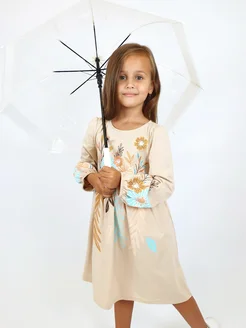 Платье детское с длинным рукавом и принтом в садик