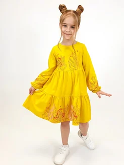 Платье детское с длинным рукавом и воротником в садик