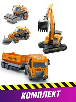 Набор, самосвал с прицепом, каток, грейдер, экскаватор