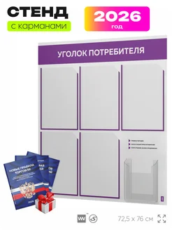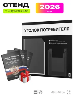 Уголок потребителя 2026 с книгами, стенд покупателя черный