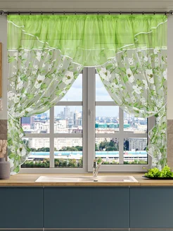 Тюль на кухню короткая комплект