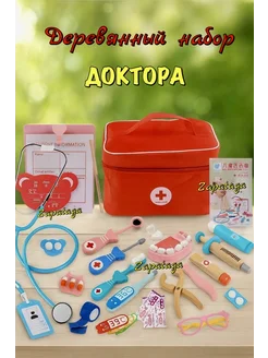 Детский деревянный Игровой набор доктора в чемоданчике
