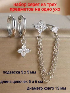 Комплект серег на три прокола на 2 уха