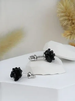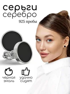 Серьги гвоздики серебро 925 пусеты круглые черные
