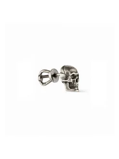 Серьга Одиночная винтовая серебро 925 Череп моносерьга