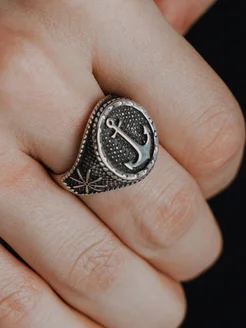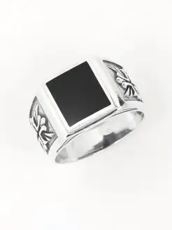 Кольцо печатка из серебра 925 пробы с натуральным обсидианом