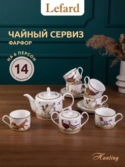 Чайный сервиз на 6 персон 14 предметов "Охота" фарфоровый
