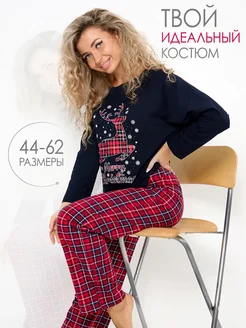 Костюм домашний с брюками и рубашкой хлопковый летний
