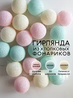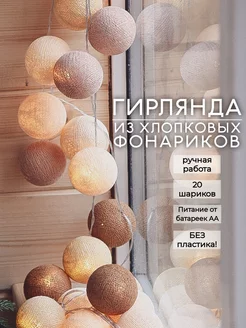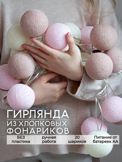 Гирлянда хлопковая на батарейках тайские фонарики 20 шариков