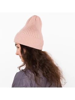 Демисезонная женская шапка пудрового цвета, размер 52-56
