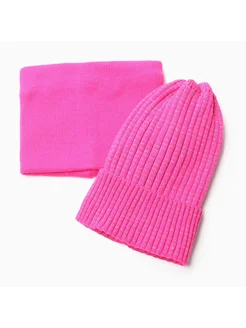 Комплект для девочки шапка и снуд, малиновый, 48-52