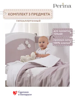 Постельное белье детское в кроватку Перина Бамбино грей 3пр