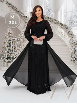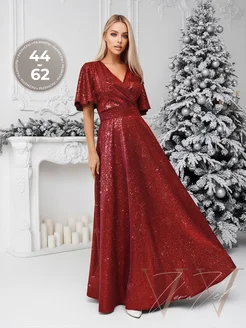 Платье вечернее в пол праздничное с пайетками и шлейфом