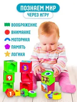 Сортер-пазл кубики для детей 3в1 детские с цифрами