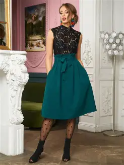 Юбка в складку с высокой талией офисная
