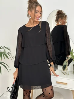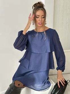 Платье вечернее шифоновое ярусами с воланами