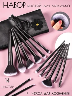 Кисти для макияжа чёрные 14 штук с чехлом