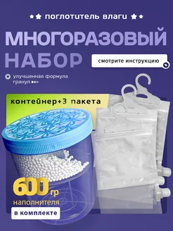 Многоразовый поглотитель влаги комплект 3 шт+контейнер