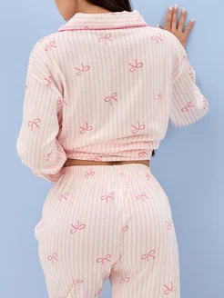 Пижама со штанами и рубашкой y2k с бантиками