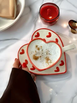 чашка с блюдцем чайная пара с сердечками