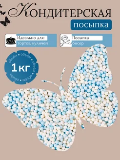 Кондитерская посыпка бисер «Шарики белые голубые», 1000 гр