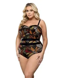 Купальник-бандо с хищным принтом на плавках