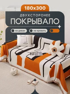 Плед-покрывало 180х300 двустороннее оранжевое с рисунком