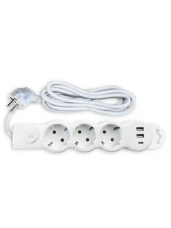 Удлинитель сетевой 1,5 м 3 гнезда USB, Type-C