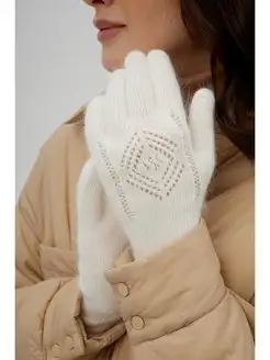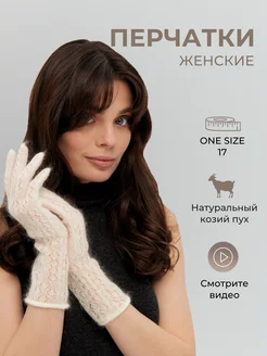 Перчатки женские из пуха ажурные пуховые с орнаментом белые