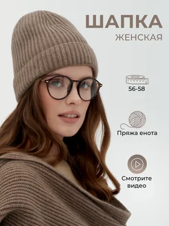 Шапка женская из шерсти енота вязаная шерстяная бини рубчик