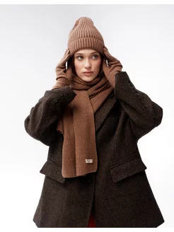 Шапка шерстяная женская тыковка коричневая вязаная в рубчик
