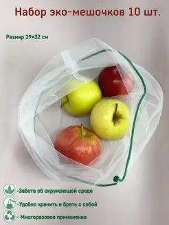 Многоразовые экомешочки для продуктов и хранения 10 шт