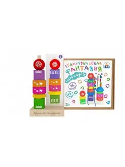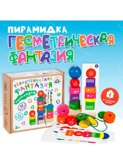 Пирамидка деревянная и шнуровка Геометрическая фантазия