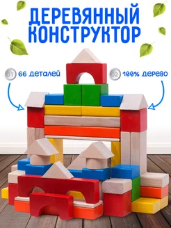Конструктор деревянный Цветной окрашенный (66 деталей)