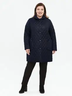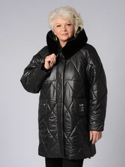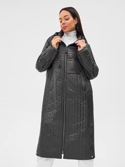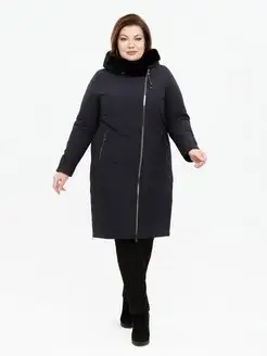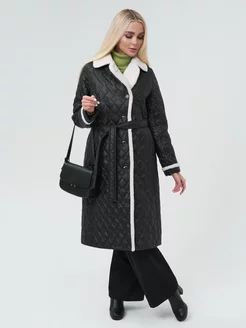 Пальто зимнее стеганое длинное с меховым капюшоном