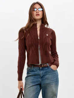 Свитер оверсайз вязаный на молнии укороченный