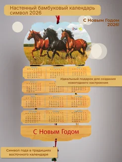 Настенный бамбуковый календарь символ 2026