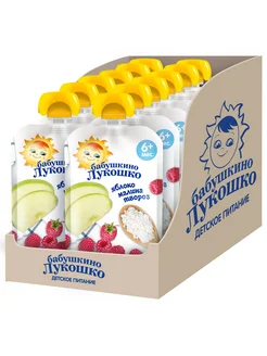 Пюре яблоко+малина с творогом,6+мес, 90 г,12 шт